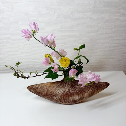 Today’s ikebana was fun because my teacher Mr. Okada, a man of many talents who can do backflips, allowed me to come up with own ideas. In the assignment, the yellow flowers were supposed to be the main elements, but I wanted to make the sweet peas the main elements, in the same way that the sidekick may steal the show from the lead actor. I also made the ivy into a circle. The link to my last ikebana with the link that leads to more previous ikebana links.
